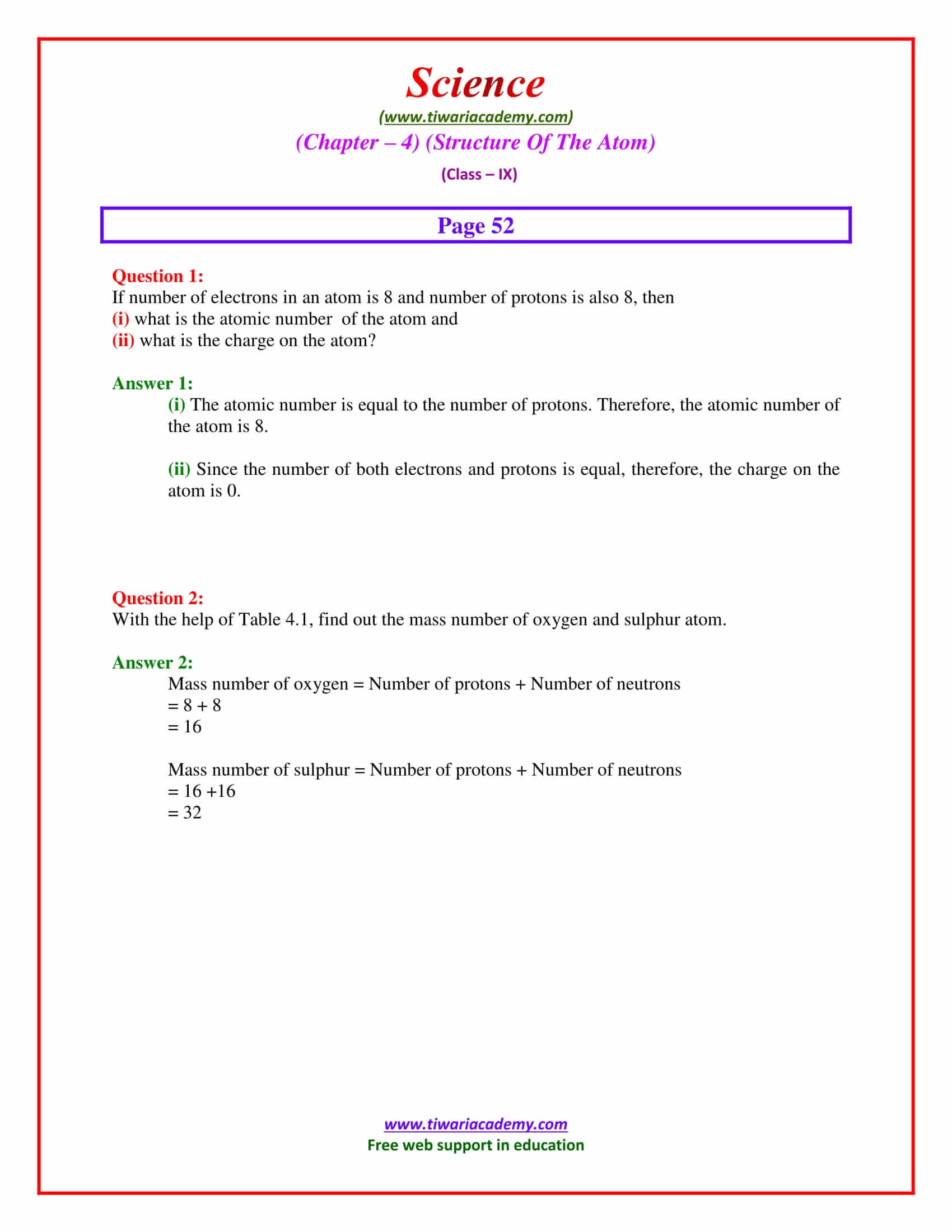 Ncert Solutions For Class 9 Science Chapter 4 Structure Of The Atom
